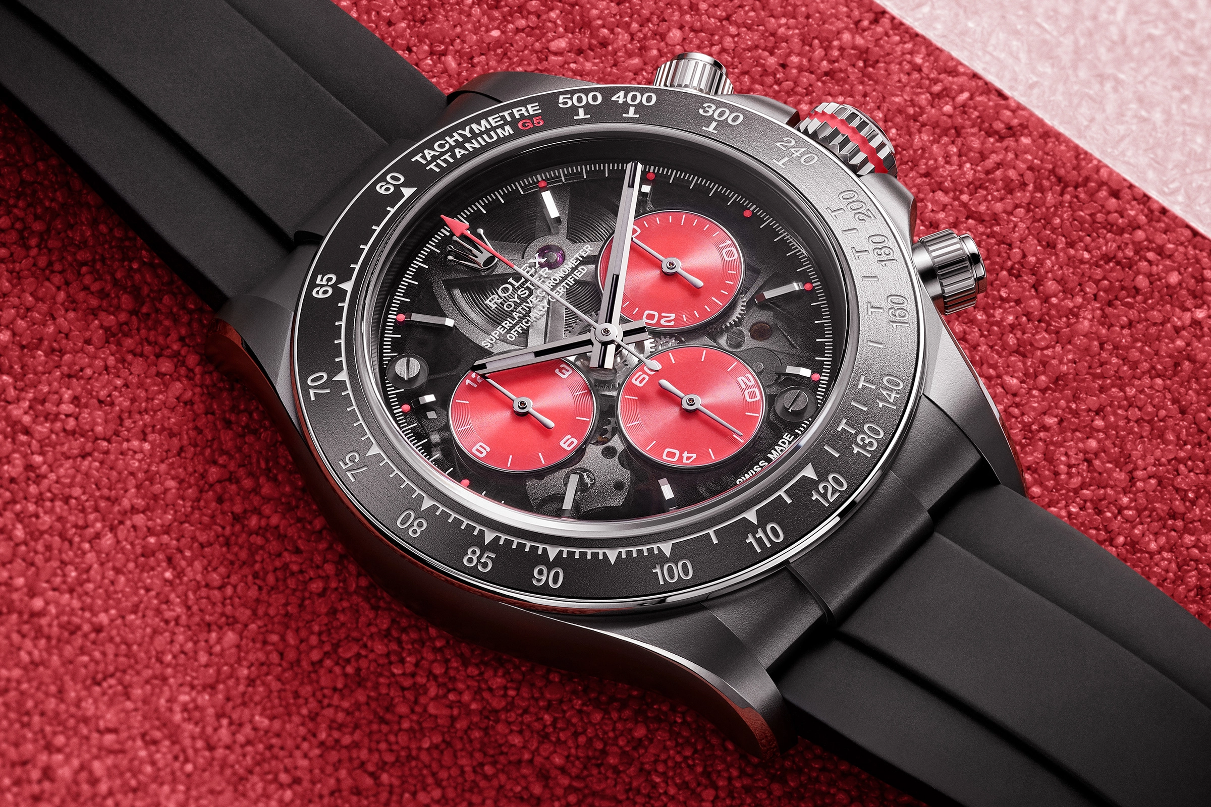 Every detail of this customization was a bold gamble, balancing a highly technical approach with aesthetics. Discover the features that shape the identity of this unique timepiece.