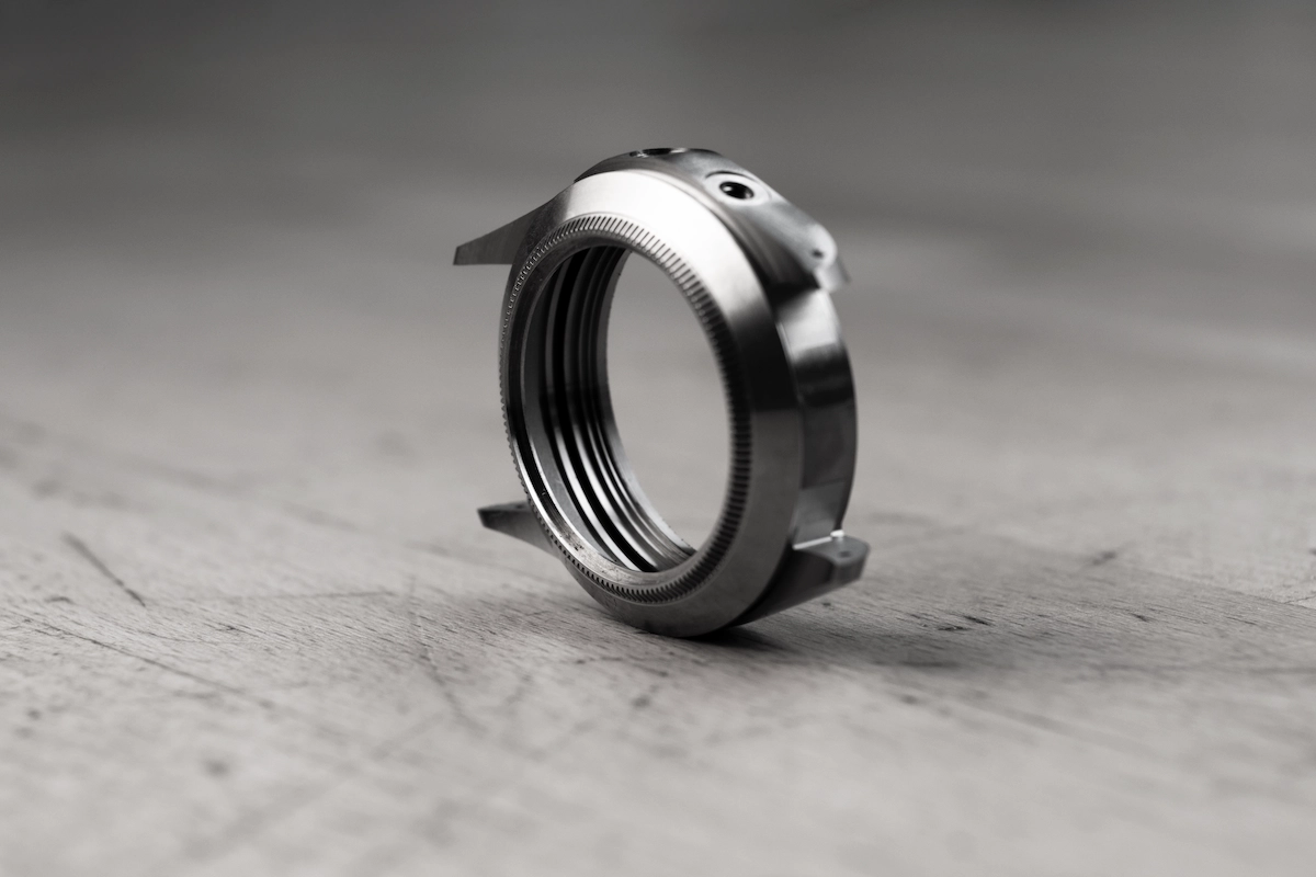The bezel was crafted in Titalyt® treated titanium, an anodizing process that modifies the oxide layer on titanium’s surface, enhancing mechanical properties: improved wear and corrosion resistance plus a distinctive dark aesthetic.