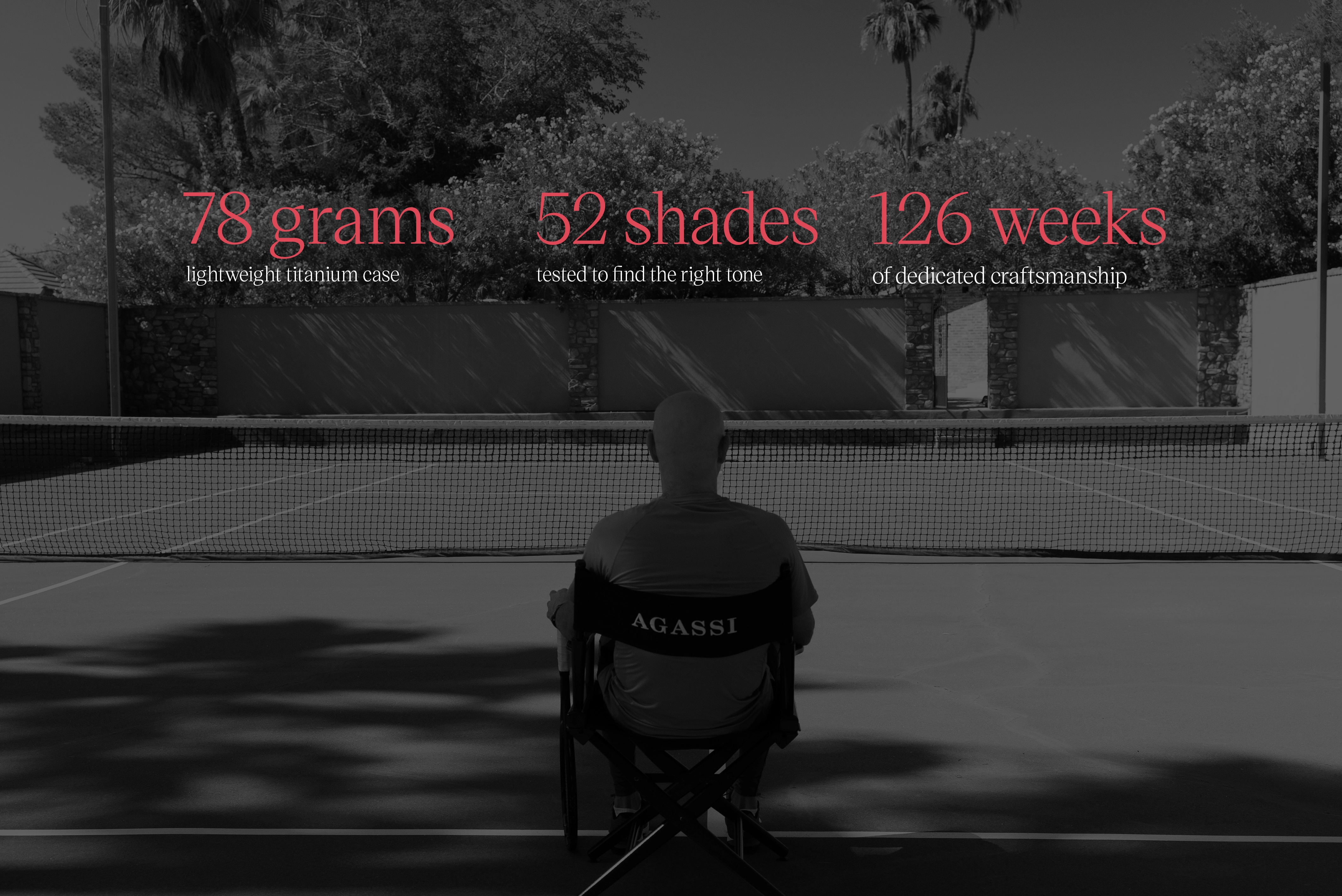 To reduce reflections and give Agassi the freedom to fully express his game, we crafted a titanium case with an ultra-light Tytalit® treatment. It delivers lightness and comfort, while ensuring reliability and strength.