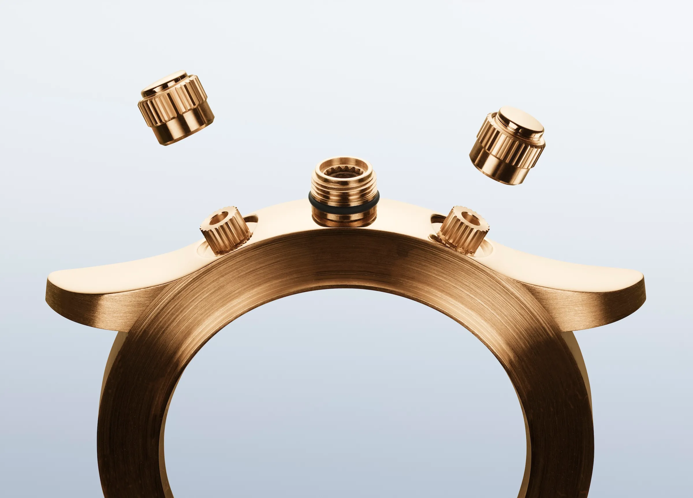 A glimpse into the movement and mechanisms of a timepiece is a rare honor. For his personalization Adam decided to transform every component of the 4130® caliber within his timepiece. Each part has been meticulously modified by hand by our artisans. Every bridge undergoes cutting, sandblasting, beveling and polishing by hand, followed by an anthracite finish. Satin-finished using a buff, the wheels are then coated with a rose gold galvanic treatment.