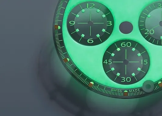 Green MilkWhite Billight® details on the bezel, dial, and hands create a captivating visual tension.