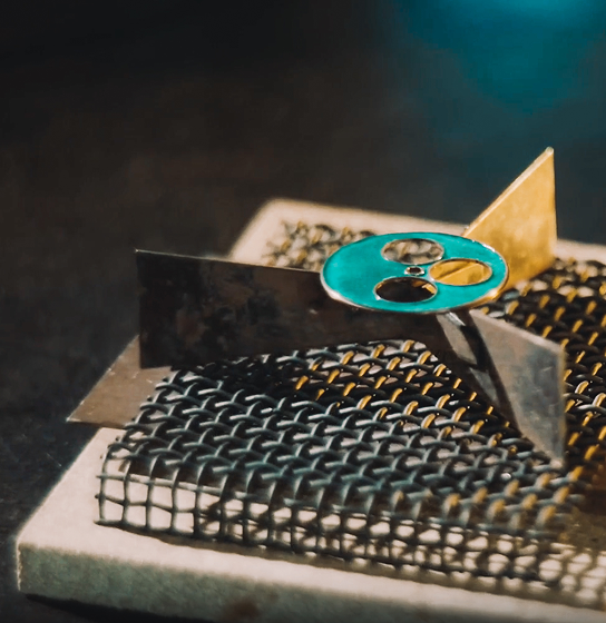 We choose the base in gold, copper or titanium, then the shades and effects. A color can be deep or translucent depending on how thick it is. But it’s the fire that decides. That unpredictability is what makes every creation truly one of a kind, as what we create lives once.