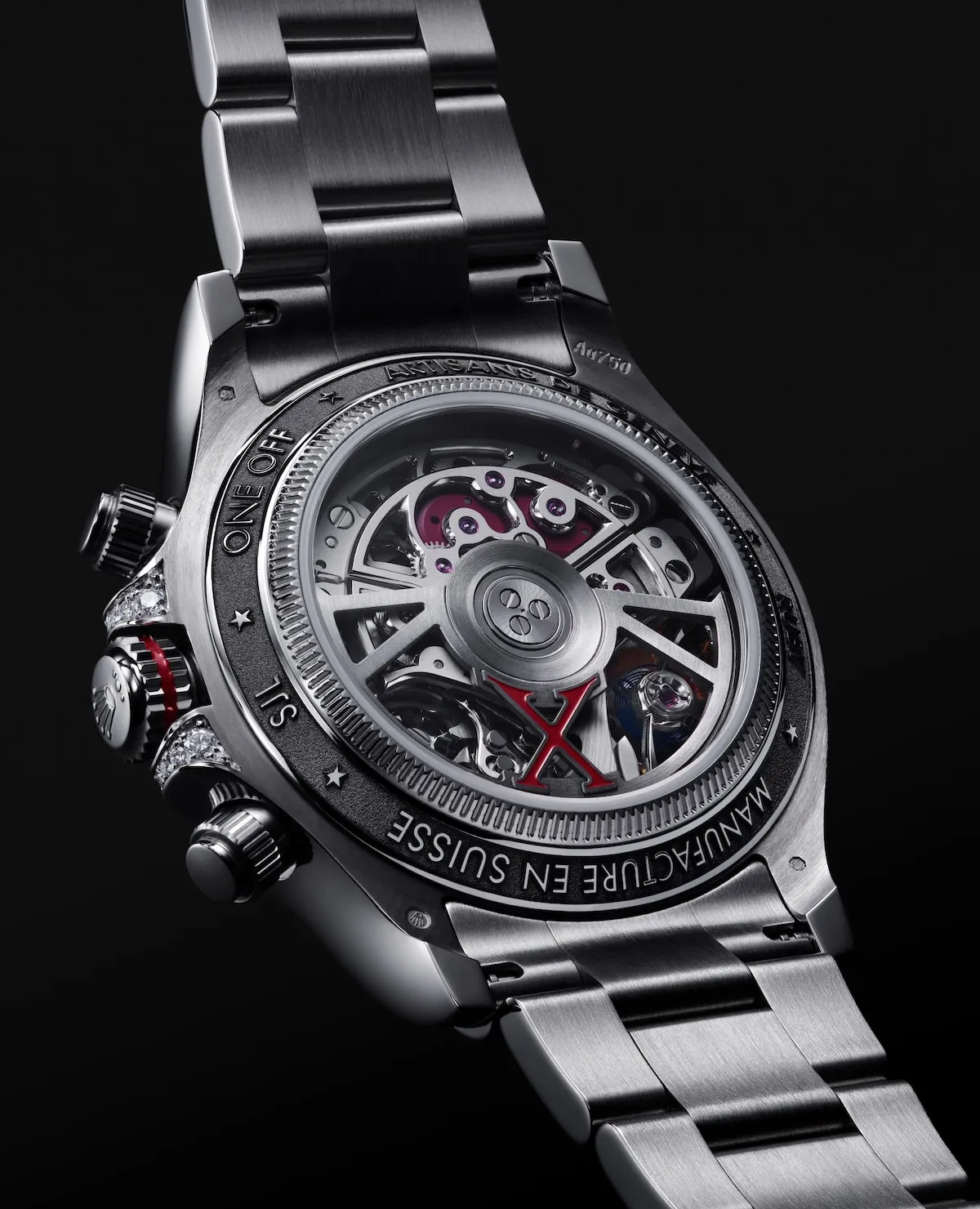 En 2023, nous avons été approchés par un passionné à l’exigence hors norme : il désirait personnaliser sa montre autour de sa couleur de prédilection, le rouge, Pour M.S.J.L., aucune contrainte technique et de temps ne devait entraver notre quête d’excellence absolue. Nous avons mis notre savoir-faire artisanal au service de son projet, imaginant une personnalisation où chaque détail refléterait cette exigence.