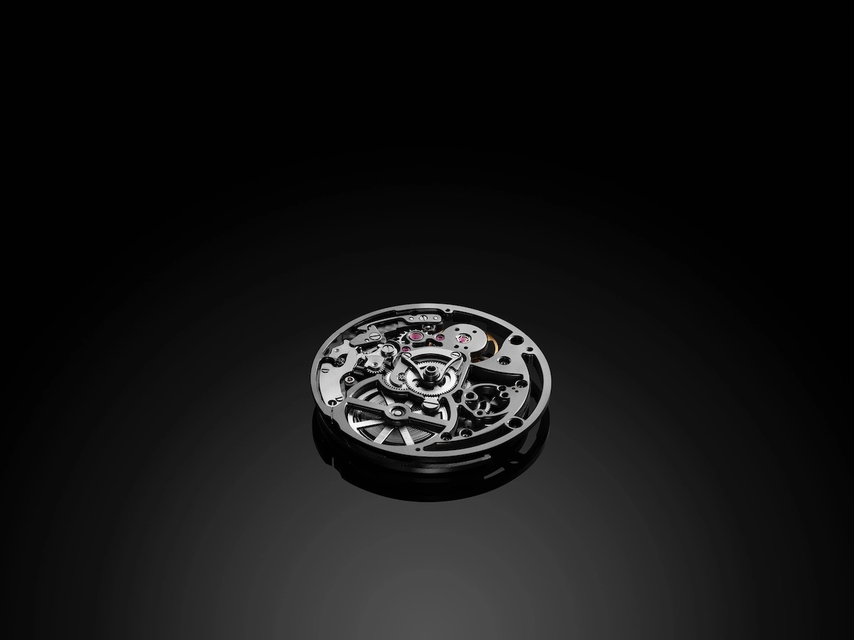 Nous nous sommes appliqués à sabler à la main la platine du mouvement avant de recevoir un traitement en palladium pour lui donner un maximum de brillance.